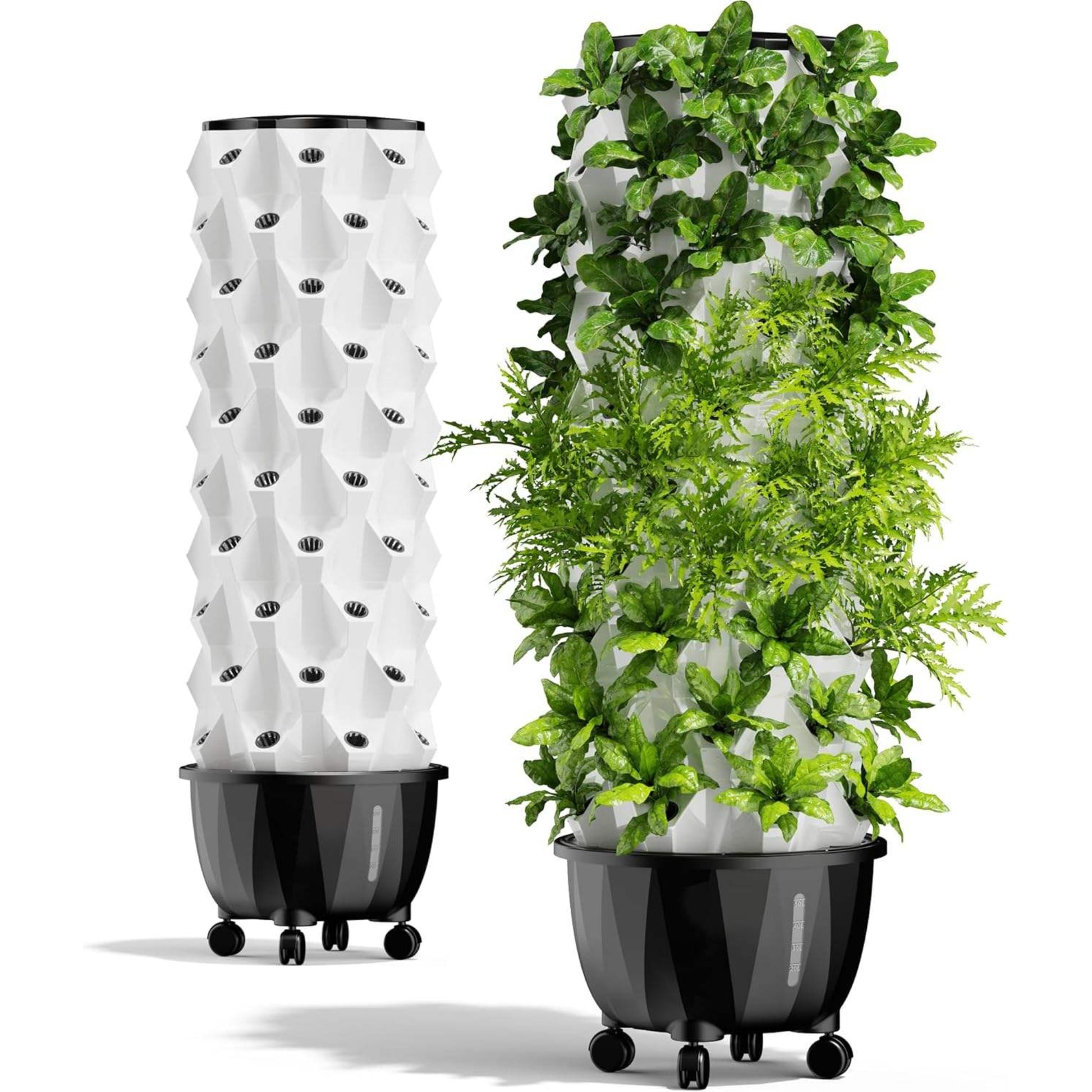 Features: Dual towers, 96 planting slots, mobile base, top irrigation